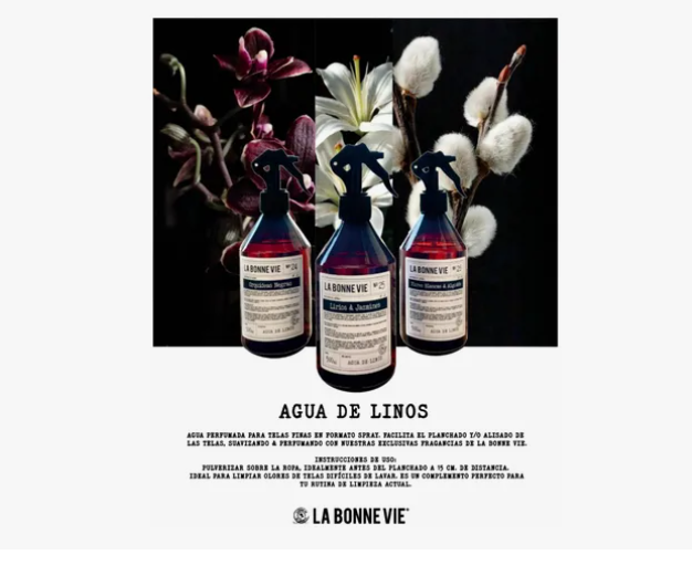 Cuidá y perfumá tus textiles con la Agua de Lino Aromática La Bonne Vie 500 ml, diseñada para quienes buscan fragancias textiles premium y una experiencia sensorial envolvente. Ideal para ropa de cama, cortinas, manteles y prendas delicadas, deja un aroma fresco, elegante y duradero que transforma cada espacio en un ambiente acogedor.